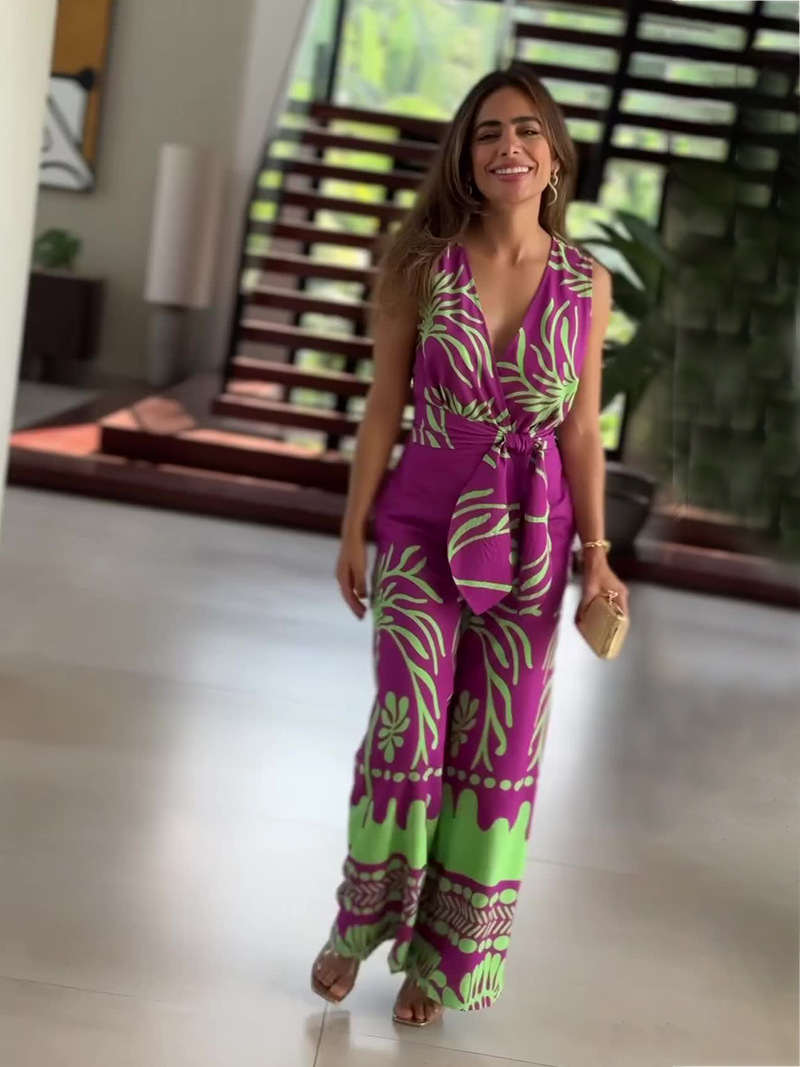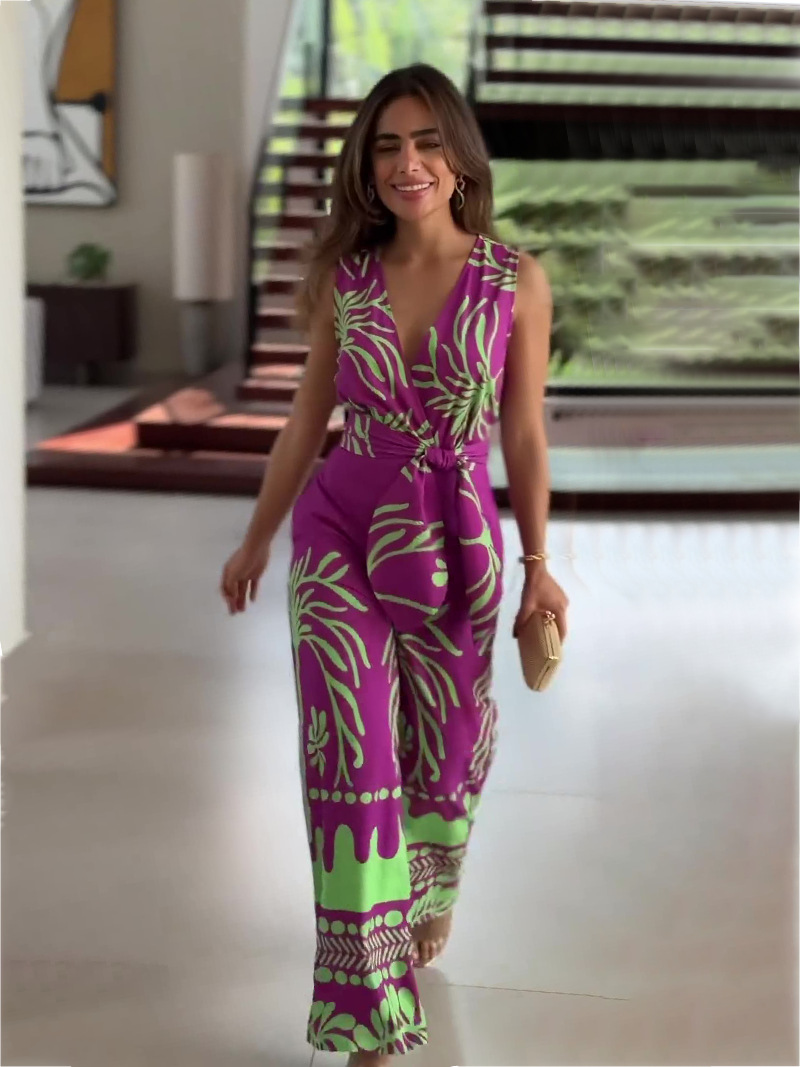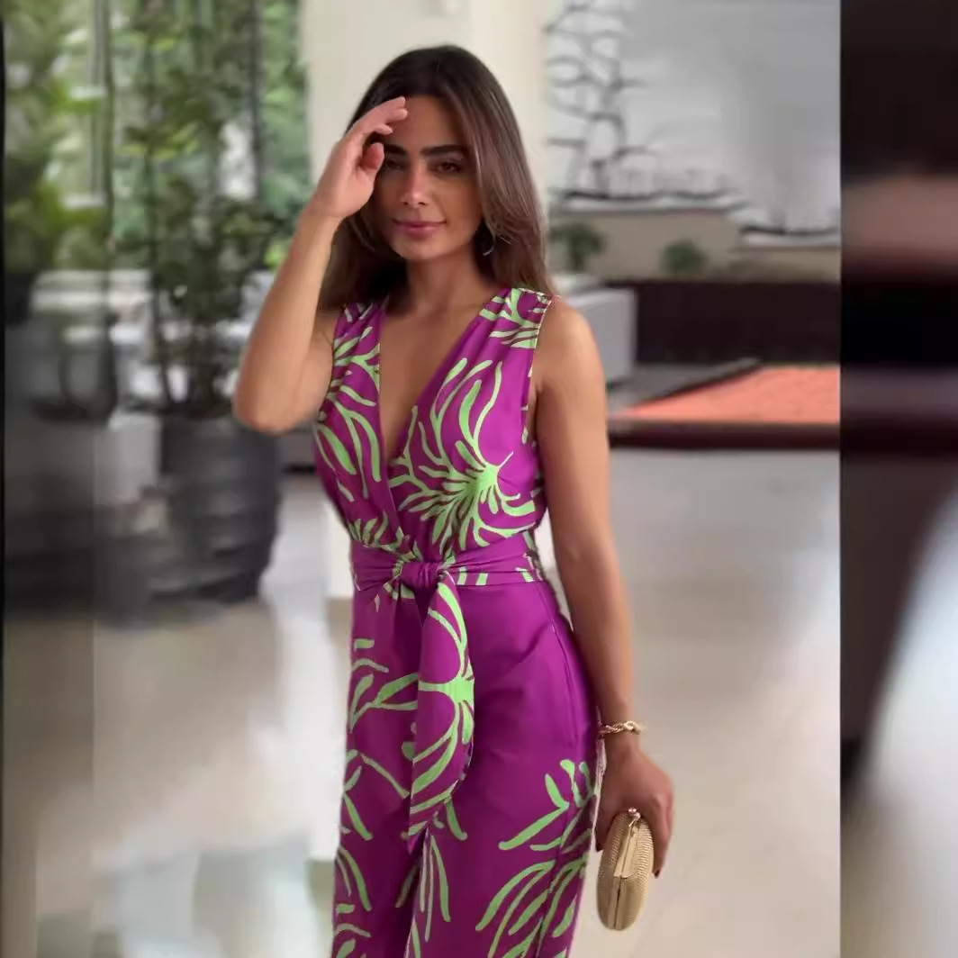 🎉Enjoy 80% discount on two products🎉[S-2XL] 2024 New Fashion Sleeveless Printed Slim Belt Jumpsuit Suit