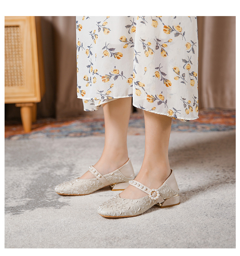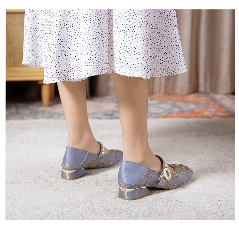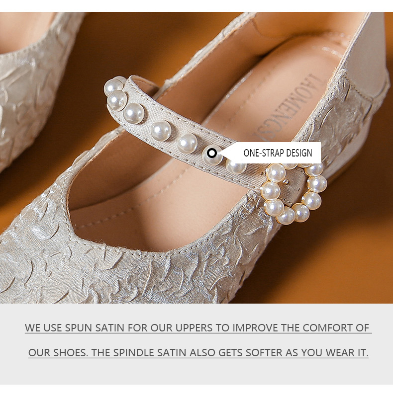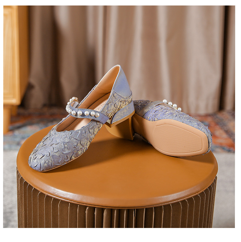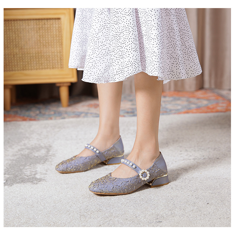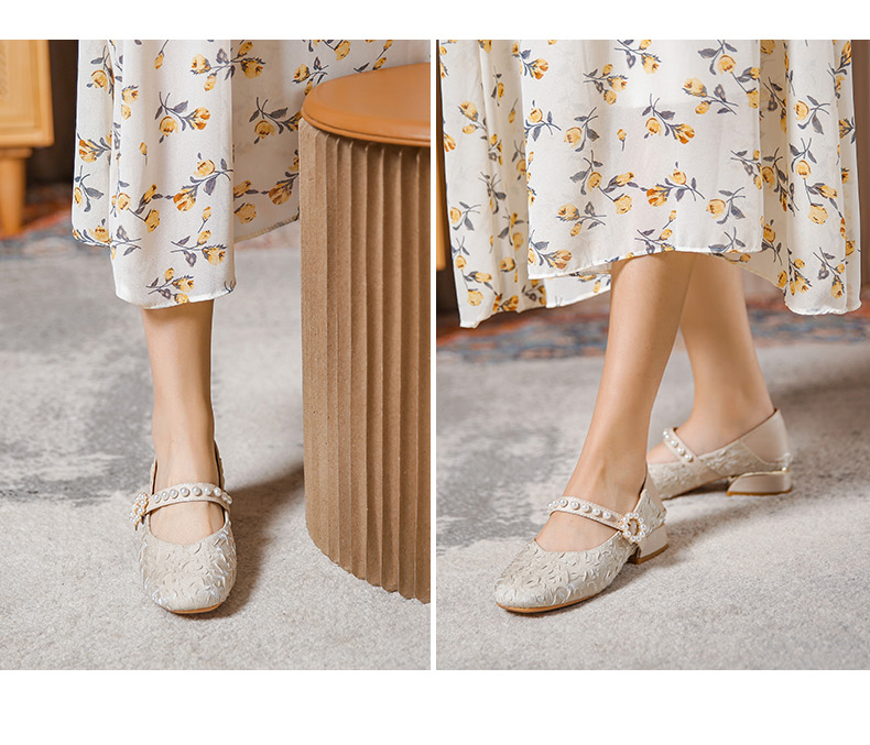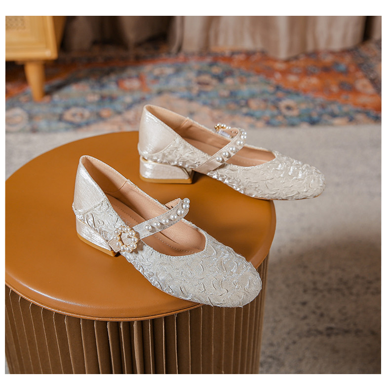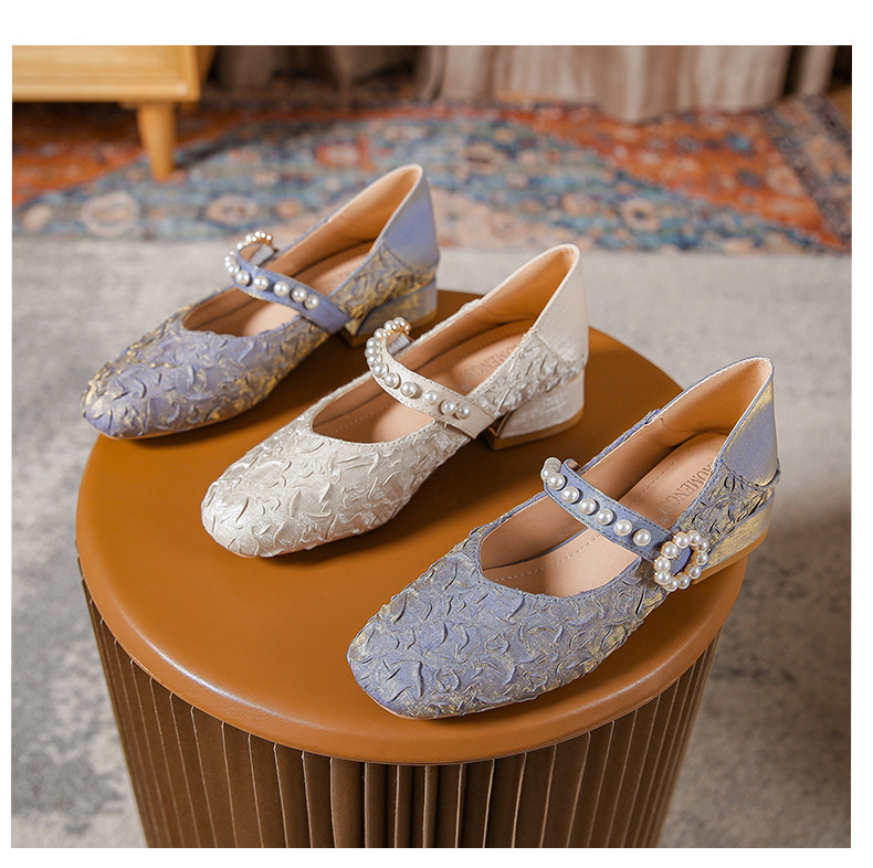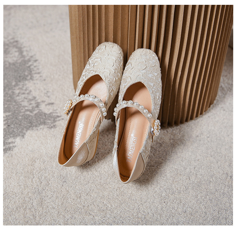 Round-toe pearl low heels(N2)