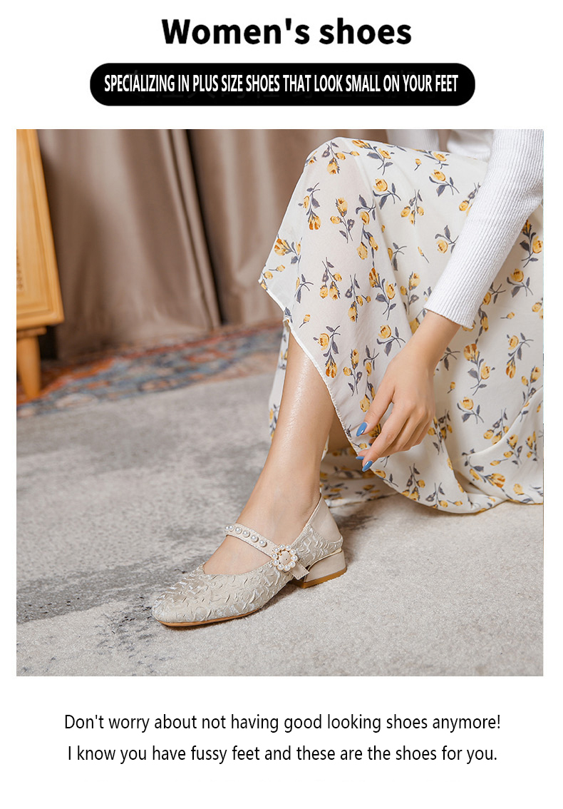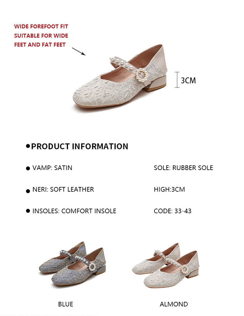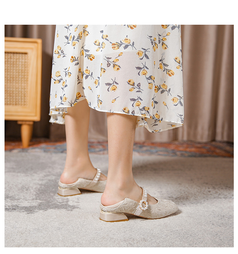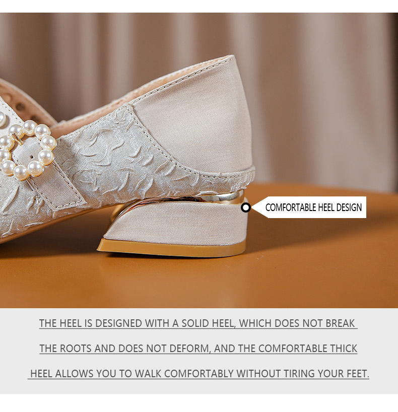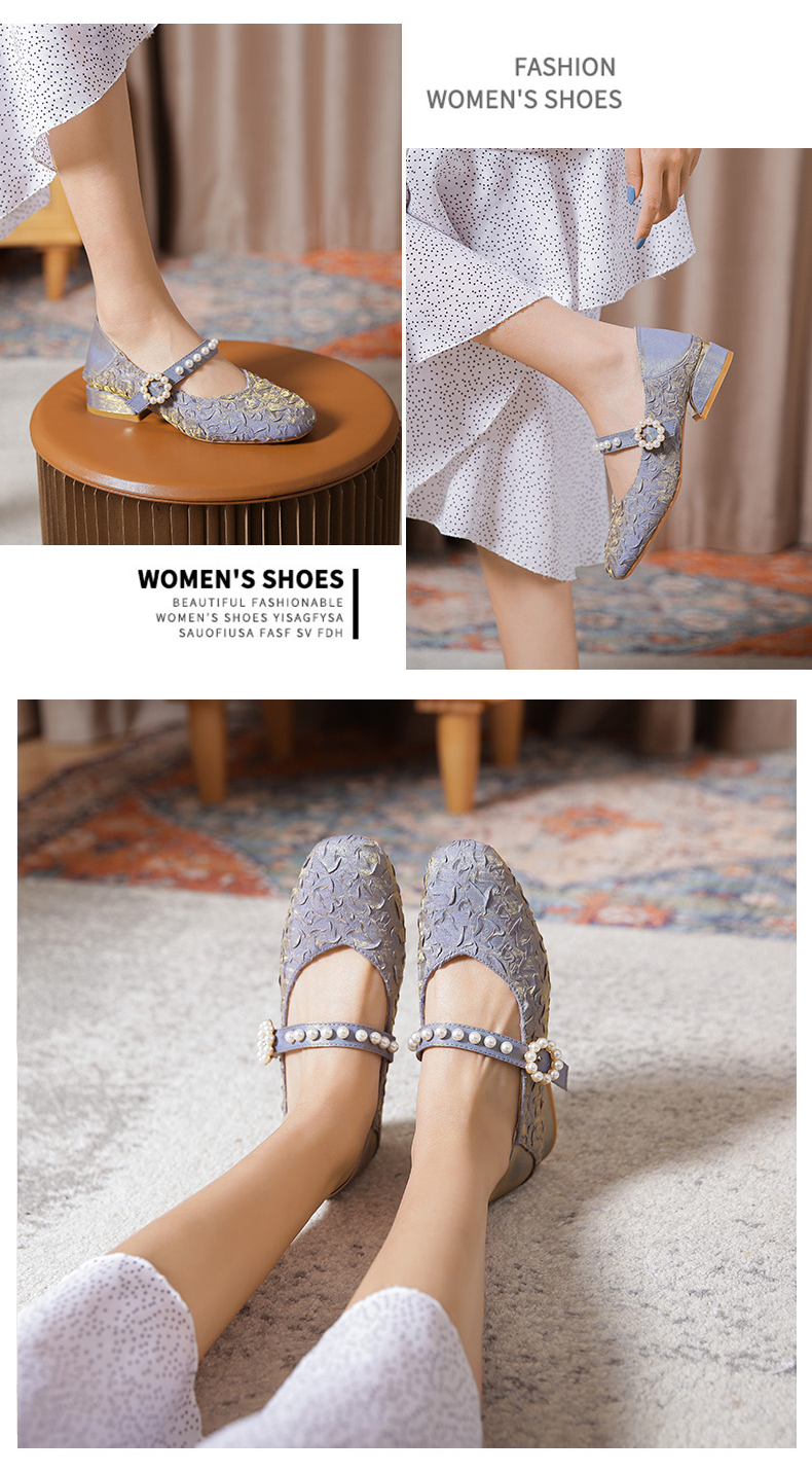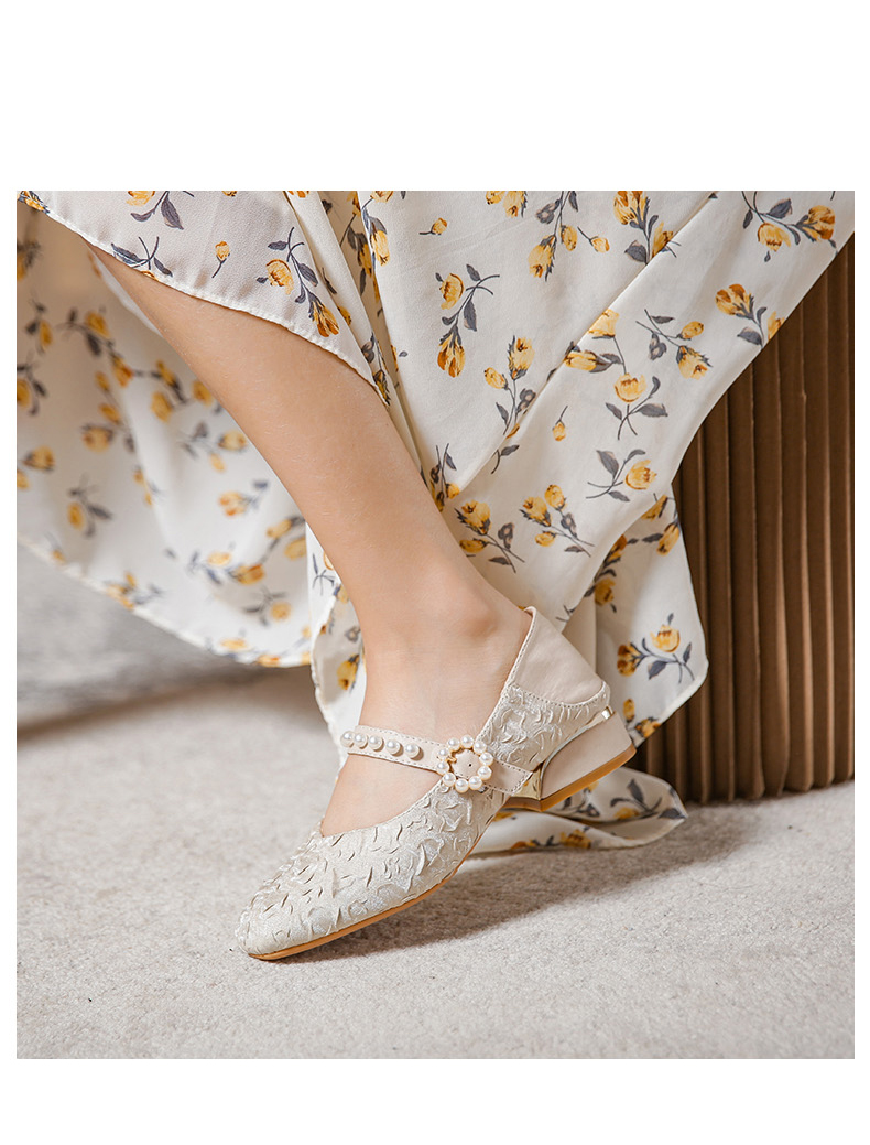 Round-toe pearl low heels(N2)